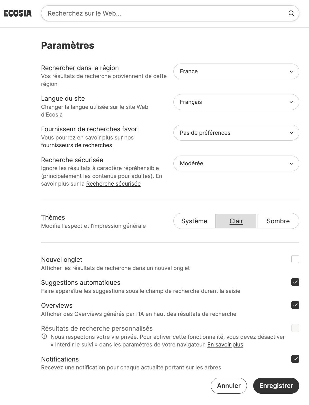- Comment enregistrer vos paramètres de recherche Ecosia de manière permanente